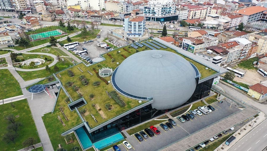 “Burada kullanılan ahşap tavan, karbon emilimi gerçekleştiriyor. Gri su uygulamamız var, su filtrelenerek tekrar dönüştürülüp klozetlerde kullanılıyor. Güneş panellerimiz var, enerji üretimine destek oluyoruz. Yeşil çatı uygulamamız var, yeşil çatıdan alınan yağmur sularını depolayıp, arıtıp yeşil alan sulamada kullanıyoruz. Zemin katta alttan ısıtma var, ısı pompalarla yandaki toprak araziye gidiyor ve tasarruf konusunda çok destek oluyor. İç bahçemiz var, bu bahçenin kapılarını açtığımızda doğal iklimlendirme oluşturuyor. Bahçenin tavanı açık, dolayısıyla havayı sirküle ediyor. Ayrıca müzenin kubbesindeki panoramik, eski, yeşil Bursa deneyimi de şehirleşmenin doğaya verdiği tahribatı göstermesi açısından önemli bir çalışma. Bu anlamda sürdürülebilir yeşil müzelere örnek gösterilebiliriz.” diye konuştu.