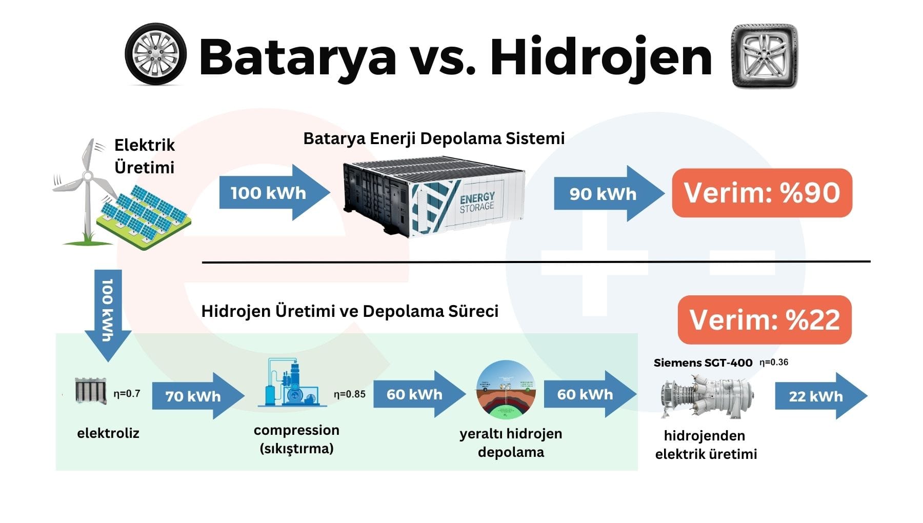 Hidrojen sistemlerinin avantajı ise “yüksek enerji yoğunluğu ve uzun depolama süreleri”. Bu sebeple büyük ölçekli enerji depolama ve endüstriyel seviyede uygulamalar için daha uygun olduğu düşünülüyor.
